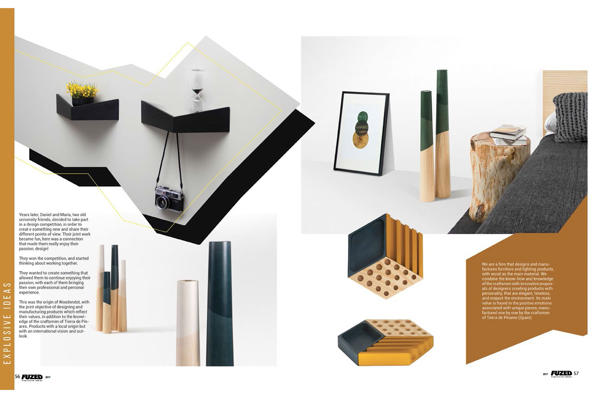 We are proud to be published in the Fuzed Magazine from Egypt. The issue talk about our philosophy, our way of working and our products. As can be seen in the images most of our products has been featured like the Etna Candle holders, Pelican Shelves, Kesito or Batea Tables.