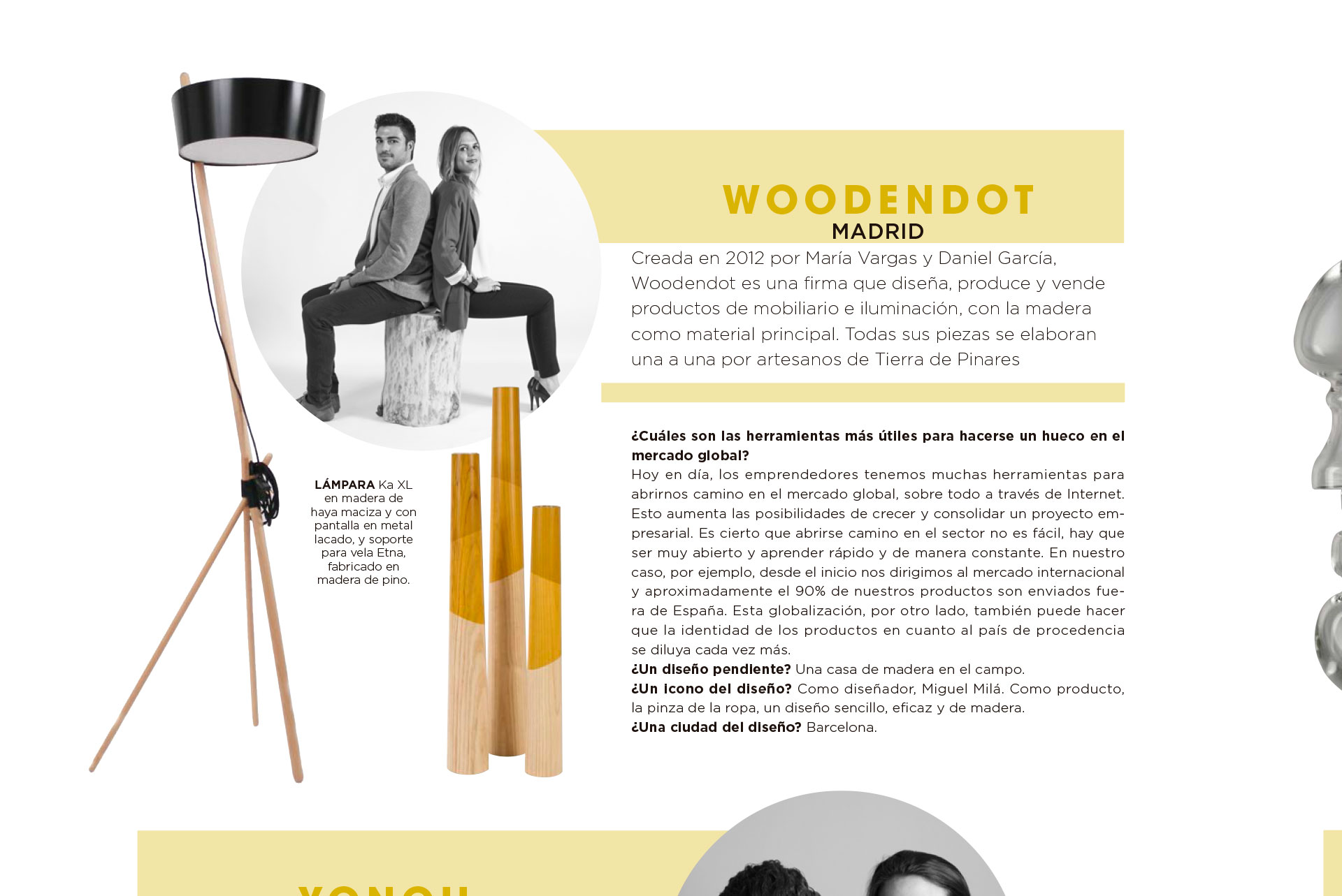 In addition, INTERIORES also featured photos of the Woodendot founders Daniel García and María Vargas. The Ka standing lamp and the giant Etna floor candlesticks are also photographed.
